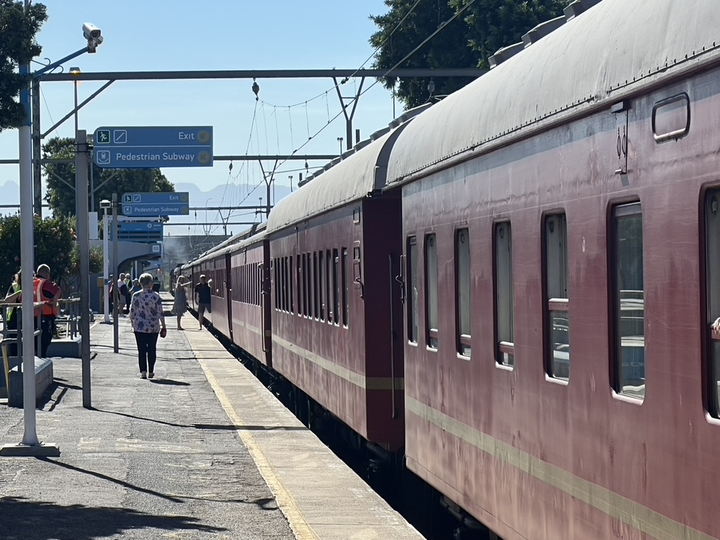 The train left on time and after an hour we stopped at a railroad siding, and private South Africa met the real South Africa. Where once there were several operative rail tracks there was now only one. Much of the copper cabling, and indeed even some of the rails, had been stolen. The result was that a regular commuter train had priority to use the single remaining track, and we had to wait while it went to its destination about an hour away and then returned. After a boring 2-hour delay, we were once again on our way.