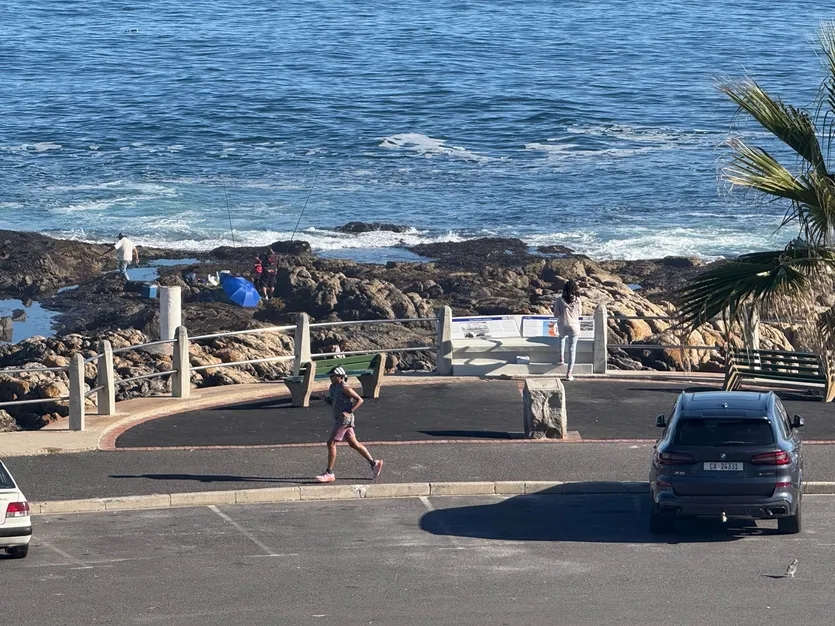 Our base for the season has been the President Apartments in Bantry Bay, adjacent to the President Hotel which is favored by tourists for its location and proximity to the ocean. Sea Point is exciting, an oceanfront hub of residential, multicultural shopping, and restaurant activity. It is also an important site geologically. Opposite our balcony is the Sea Point rock contact area first described by Clark Abel in 1818 and visited by Charles Darwin towards the end of his round-the-world voyage on the HMS Beagle in 1836. Over 500 million years ago molten granite intruded into the older darker metamorphosed siltstone and this contact was influential in developing and understanding of the geology of the earth.