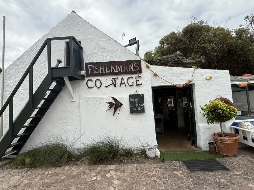IN HERMANUS ITSELF IT IS STILL POSSIBLE TO FIND PLACES LIKE A FISHERMANS COTTAGE CONVERTED INTO A RESTAURANT AND TO ENJOY FRESH LOCAL FISH.